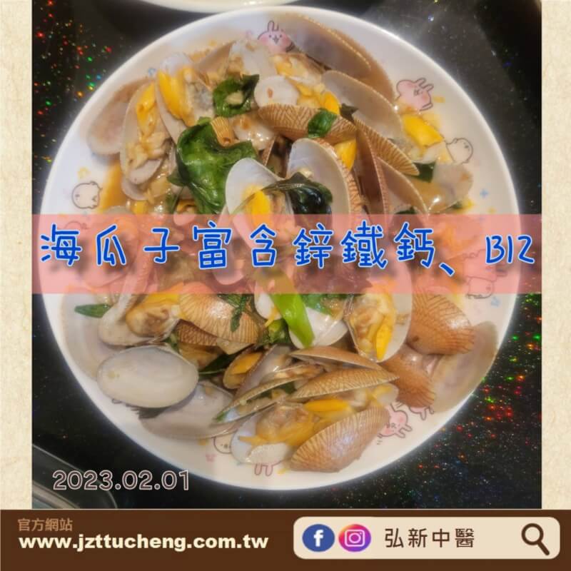 *鈣-除了牛奶、小魚干能補鈣外,也能多吃海瓜子,台灣人一般用快炒料理,不妨做成味噌湯,建議加適量的醋,海瓜子殼會溶出鈣質,可增加3倍的鈣質攝取。