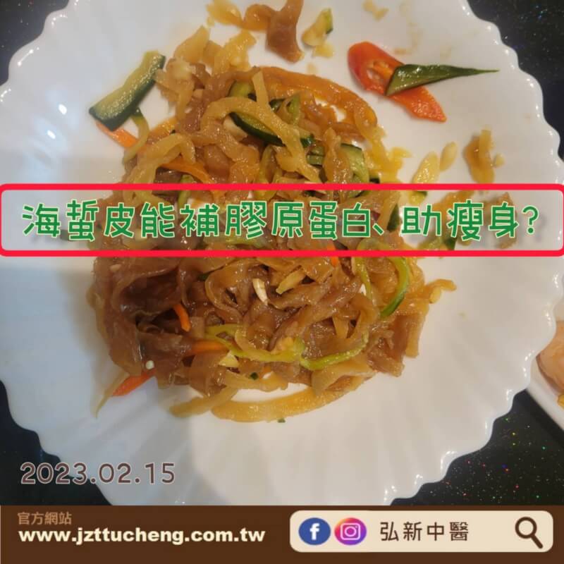 海蜇皮含豐富的膠質,適度食用能維持肌膚彈性;其食用後易有飽足感的特性,適合想瘦身的民眾做為飯前小菜,來減少後續用餐的進食量。