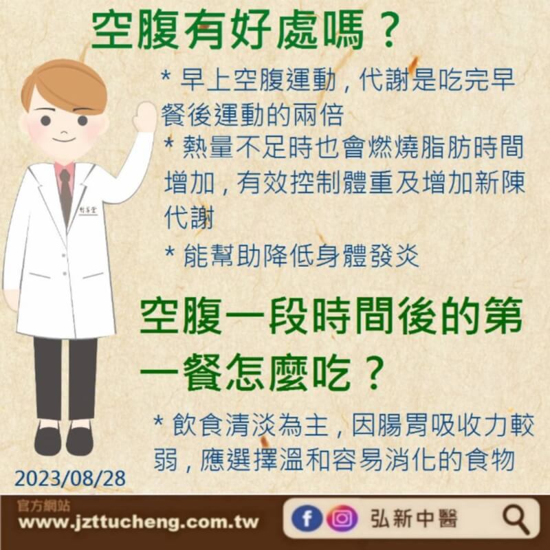 1.正常飲食者,早上空腹運動,代謝是吃完早餐後運動的兩倍,還可以降低心血管代謝疾病,先運動再吃早餐血糖會控制的較好,胰島素敏感度也會較強唷!
