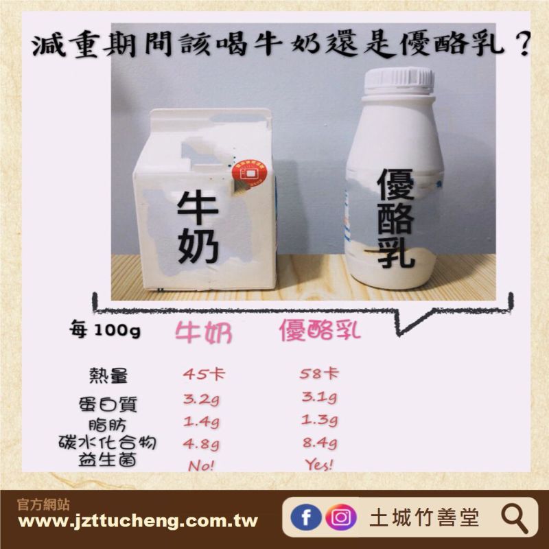 熱量:在成份上也可以看到優酪乳熱量較於牛奶高,我們大多看到的有各種口味及添加糖份,如果想要保持身材選擇無糖或自己做哦!