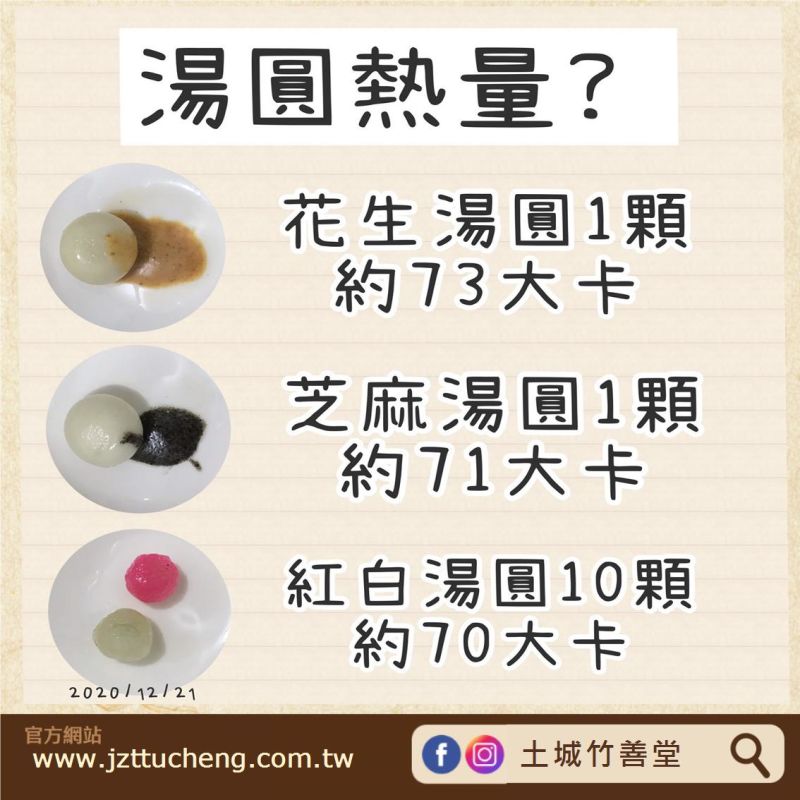 冬至時期不少人都會吃上一碗湯圓過節,不管是有包餡料的或是古早紅白湯圓,熱量都不容小覷。