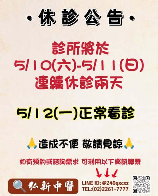 休診公告:5/10(六)~5/11(日)母親節休診~