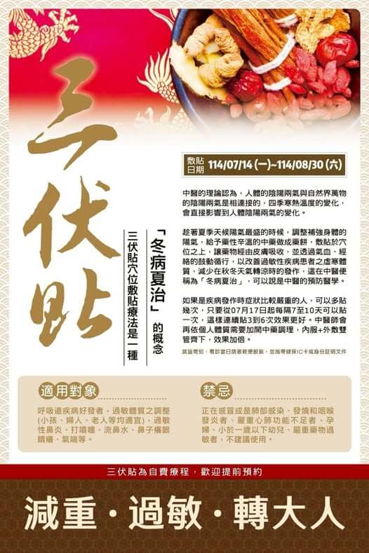 期間限定的三伏貼可以開始預約摟~~https://www.facebook.com/share/12J7C6KswKw/一起玩IGhttps://www.instagram.com/jzt_tucheng?igsh=MWY1amI1eDV5bmVpZA==#中醫 #減重 #減肥 #埋線 #雕塑 #調理 #轉大人 #過敏 #產後調理 #內科調理 #三伏貼 #土城 #張博翔 #弘新中醫